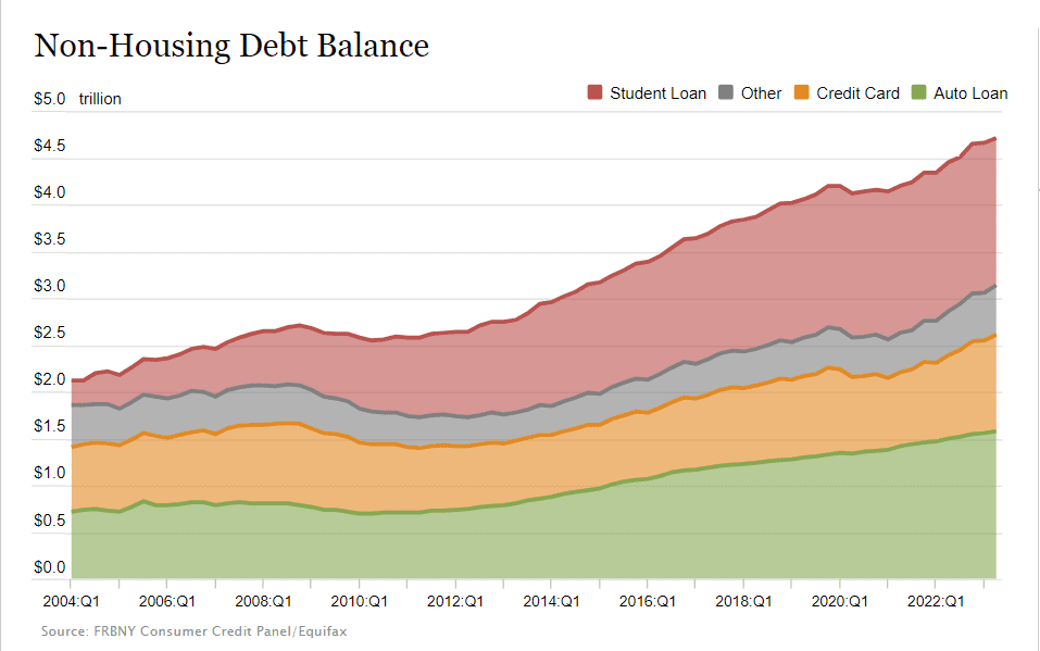 - "Credit card balances saw the most pronounced worsening in performance in 2023Q2 after a period of extraordinarily low delinquency rates during the pandemic."